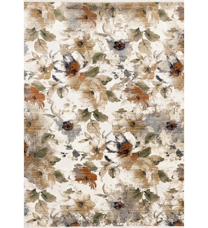(G997/4989 160240)-Serene Warm Toned Floral Print Rug, 5'3" x 7'10"-(Kalora)