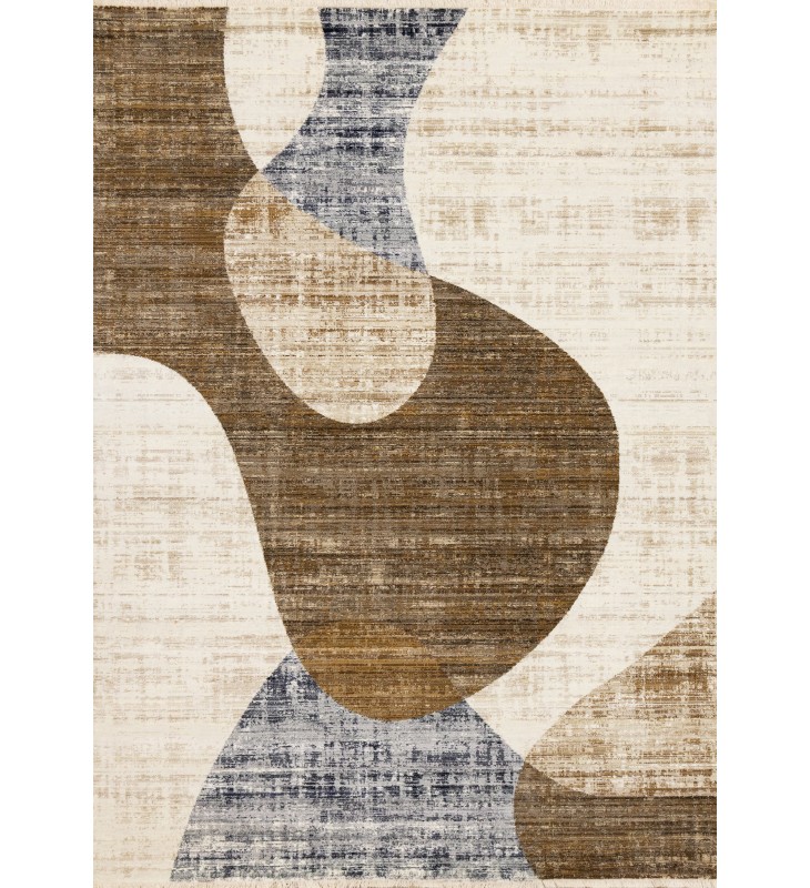 (H796/4232 240310)-Serene Cream Brown Blue Distressed Curvy Shapes Design Rug, 7'10" x 10'2"-(Kalora)