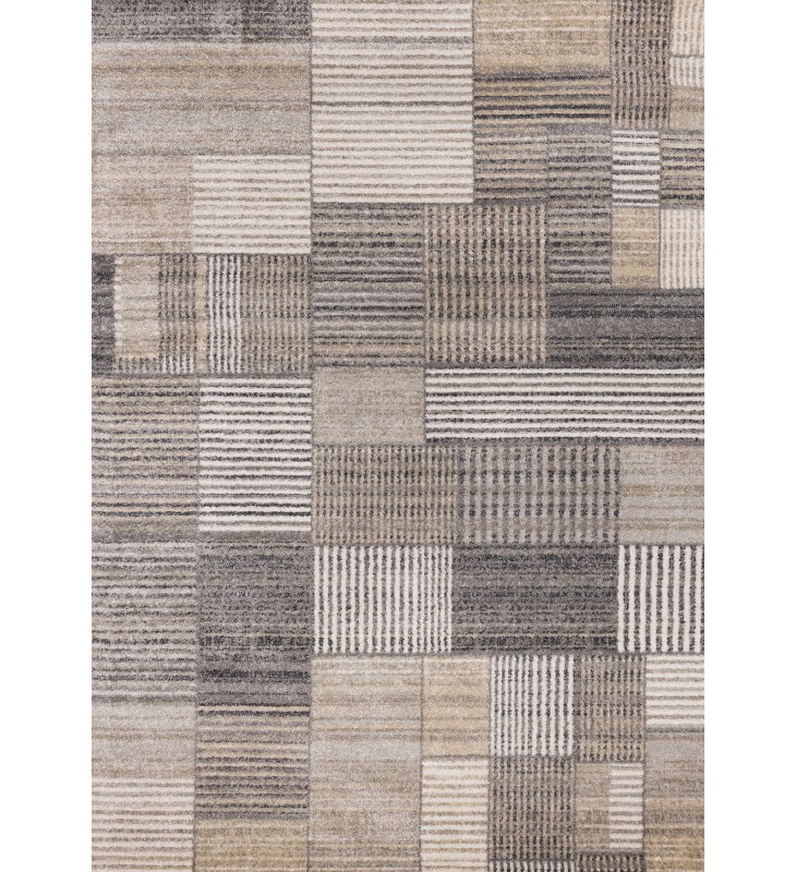 (5678/DE62 240320)-Swift White Grey Beige Striped Blocks Rug, 7'10