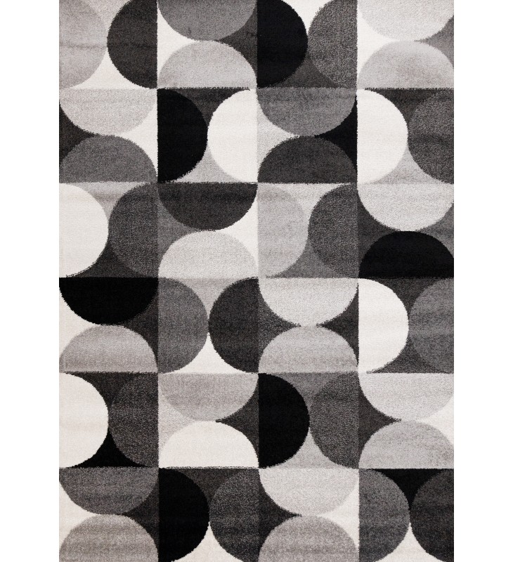 (J032/9626 240320)-Eclipse Grey Black White Mid-Century Modern Design Rug, 7'10