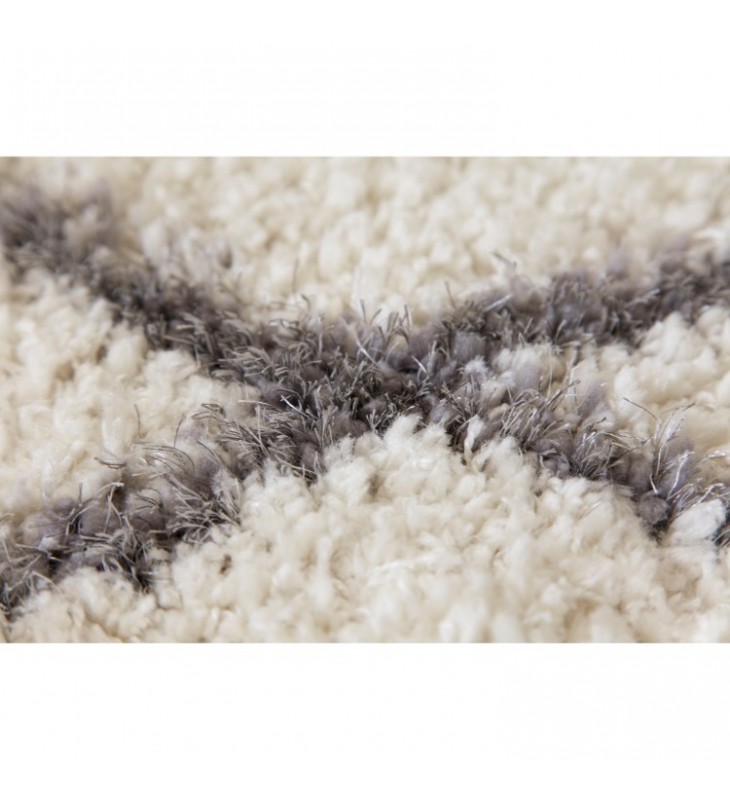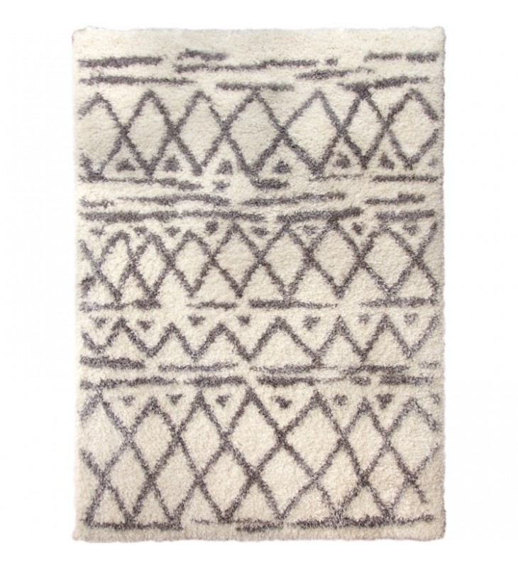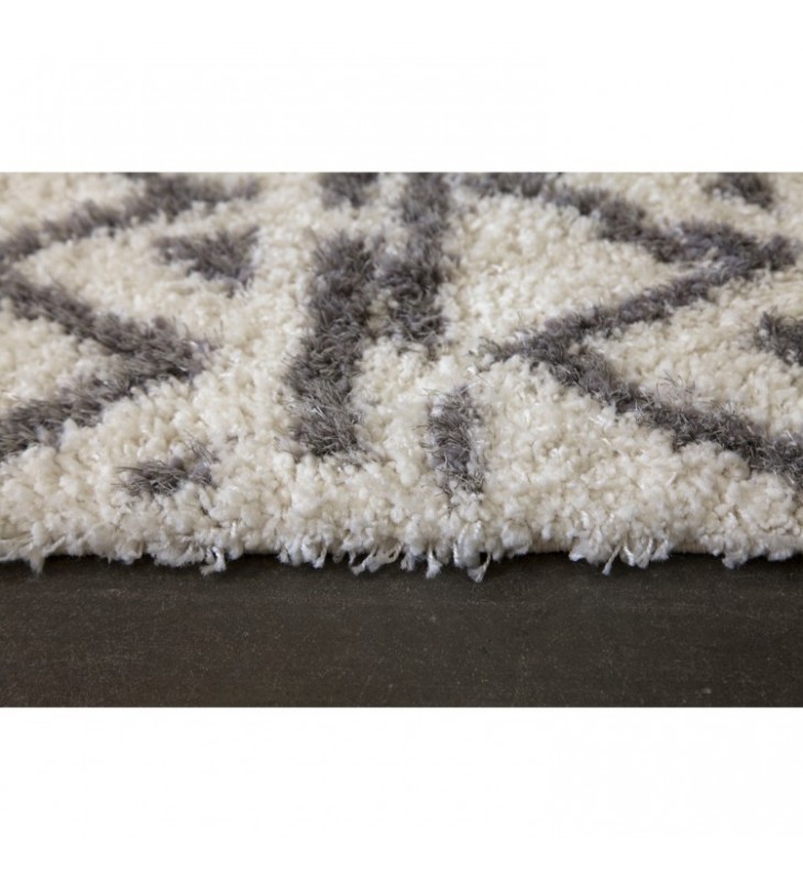 The tribal motifs of this modern area rug take inspiration from destinations near and far. Power loomed from soft synthetic-microfiber threads, alternating rows of diamonds, dots and stripes fill the soft white background with a subtle nod to Southwestern style. The geometric pattern feels like a freehand painting for the floor while the shaggy pile creates a texture you can sink your feet into.