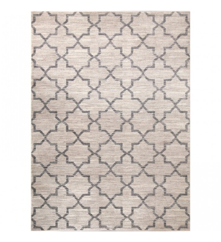 Give a beautiful room a boost of geometric style in the Moroccan pattern of this modern area rug. Striated beige fibers serve as a subtle background for the repeating gray trellis pattern that fills the rug?s rectangular format with retro glamour. Crafted with care, the power-loomed construction and soft synthetic fibers create a decorative floor covering that?s as resilient as it is refined.