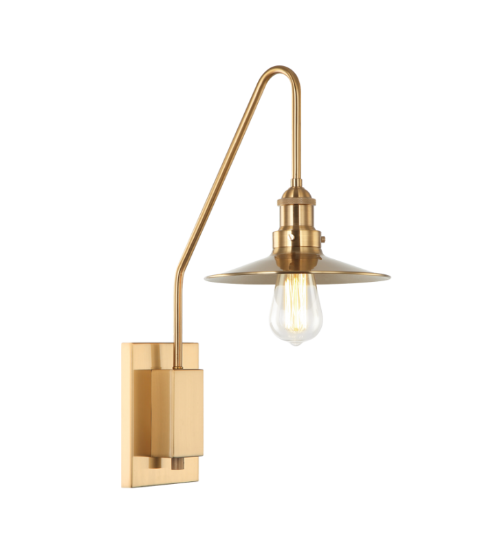 Bingrahm is a vintage style wall sconce with a modern edge. These dimmable sconces are available in solid finishes of Aged Gold Brass or Black, paired with a rectangular canopy to create a bold statement piece.