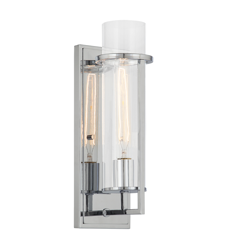 A modern creation of the candle sconce. Tubulaire\'s clear glass highlights the basic form of this timeless wall sconce. Available in Chrome or Matte Black.