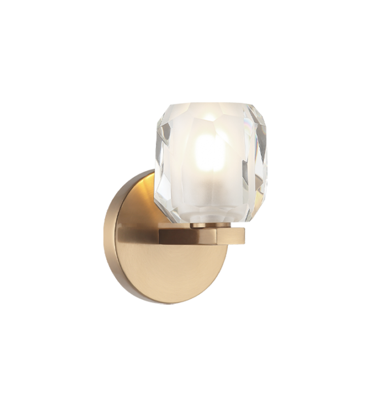 The Carleton is a stunning wall sconce series that will add elegance to any room. The beautiful crystal reminiscent of a diamond cut is a true eye catcher. Available in Aged Gold Brass and Matte Black and 3 sizes ?C Single, three and five light versions.