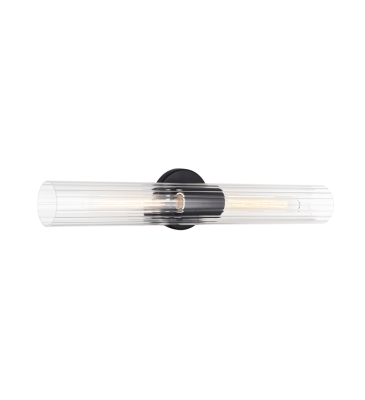 An elegant collection that features intricate detailing of clear ribbed glass. The versatility of this collection allows the fixtures to be mounted vertically and horizontally. Odette is available in 3 finishes: Aged Gold Brass, Black and Chrome as well as 2 sizes; a perfect touch to illuminate any space.