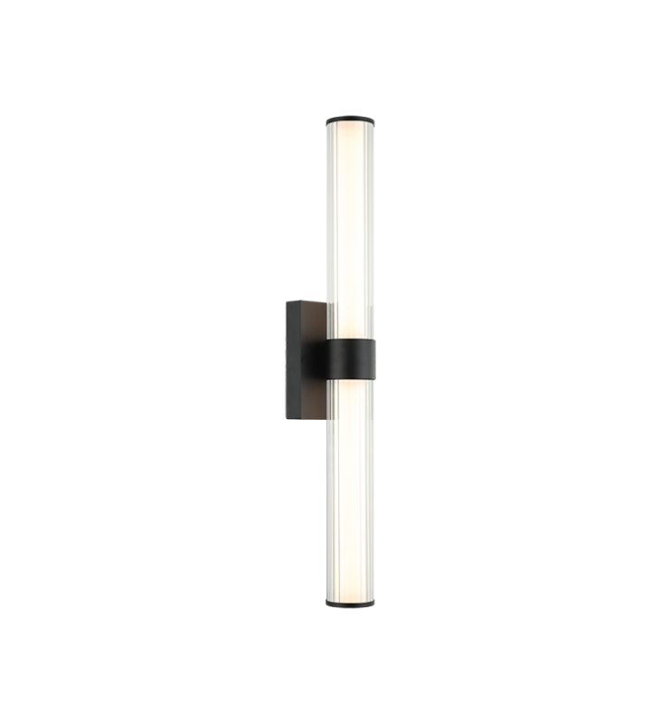 Macie The Macie wall sconce is an integrated LED covered with a white tube and then finished with ribbed glass resulting in a clean sophisticated style. The contrast between the smooth white tube and the textured ribbed glass creates a tasteful elegant energy.