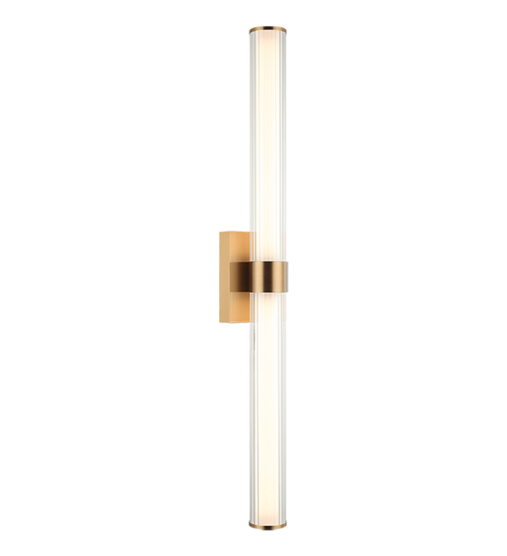 Macie The Macie wall sconce is an integrated LED covered with a white tube and then finished with ribbed glass resulting in a clean sophisticated style. The contrast between the smooth white tube and the textured ribbed glass creates a tasteful elegant energy.