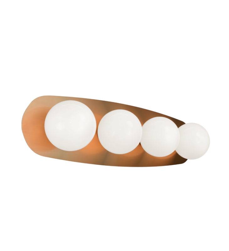 An 80??s inspired design collection. The unusual and unique shape of the canopy is highlighted by the bold contrast of the Opal glass. Razz is a versatile collection - Truly a statement piece. Available in vanity and flush mount.