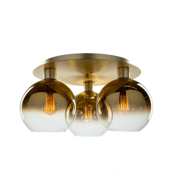 From designer Steven Sabados [S&C], the \"Morning Mist Collection\" is an instant classic. The glassware is so unique in that the bottom is clear but as you reach the top part of the sphere it is plated with a gold semi transparent mirror. The frame is finished in a matte brass. The black wires are all height adjustable. This series has multiple configurations. Model shown is the 3 light semi flush.