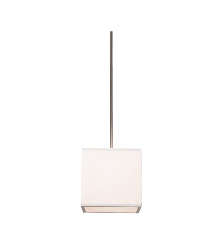 Mercer Street small Square chandelier featuring a beautiful White Linen Shade, with bottom acid white glass diffuser\n \n \n \n