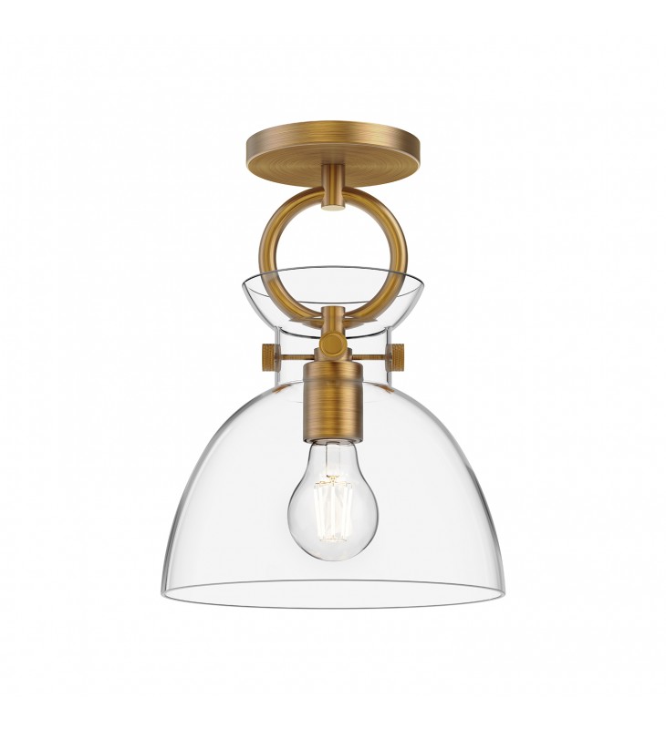 SF411809AGCL-Waldo 9-in Aged Gold/Clear 1 Light Semi Flush Mount