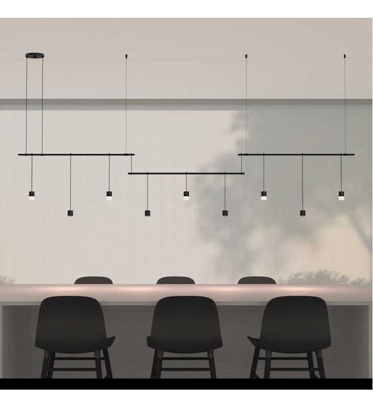 Combining etched glass diffused and directional downlight Luminaires, this 3-Bar Offset Linear composition provides a balanced approach to lighting a surface dominated area.
