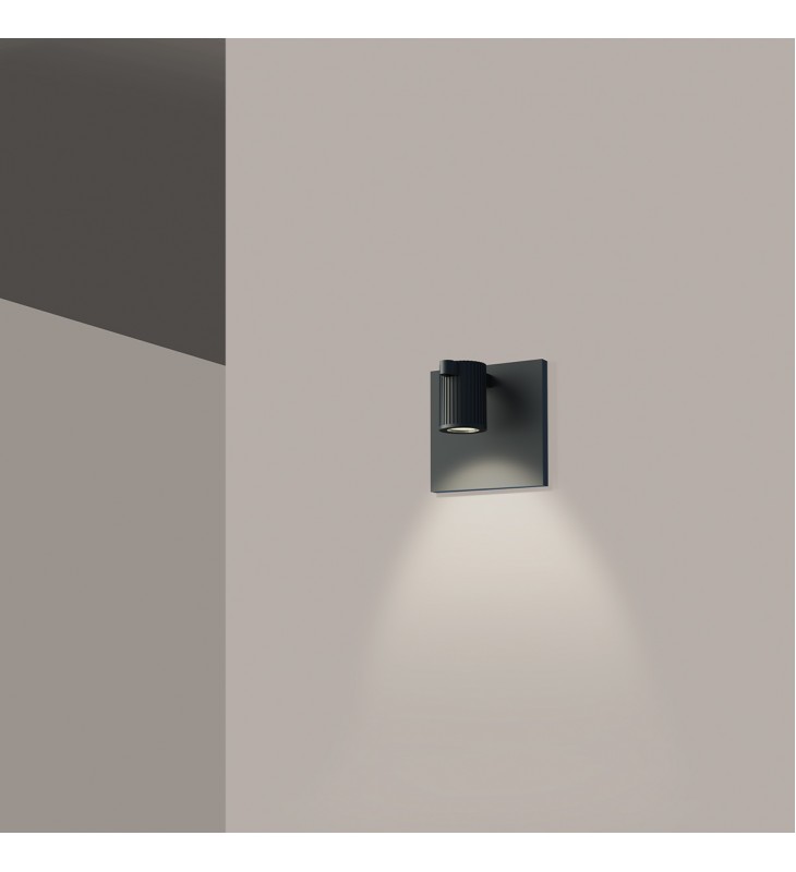 Bar-Mounted Cylinders attach to the Single Sconce Power Feed, forming a range of functional architectural Suspenders Sconces, and expanding the possibilities for Suspenders Precise. Our preconfigured Standard Single Sconce is available in Satin Black. This item follows our Single Sconce configuration. It utilizes 1 Precise Bar-Mounted Cylinder luminaire.