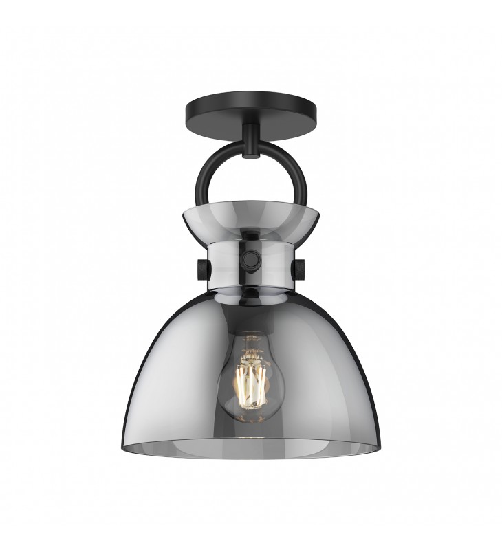 SF411809MBSM-Waldo 9-in Matte Black/Smoked 1 Light Semi Flush Mount
