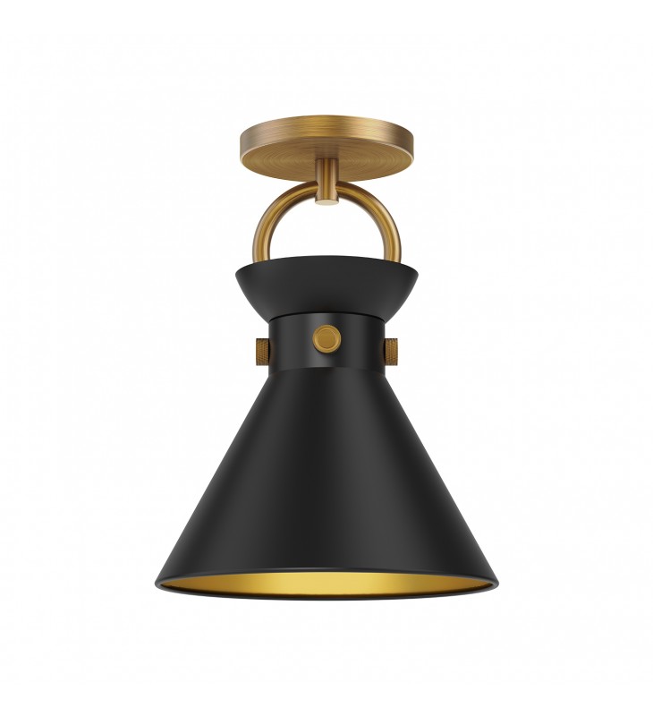 SF412009AGMB-Emerson 9-in Aged Gold/Matte Black 1 Light Semi Flush Mount