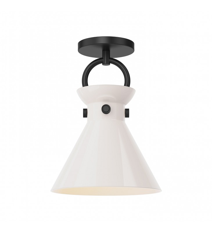 SF412509MBGO-Emerson 9-in Matte Black/Glossy Opal Glass 1 Light Semi Flush Mount