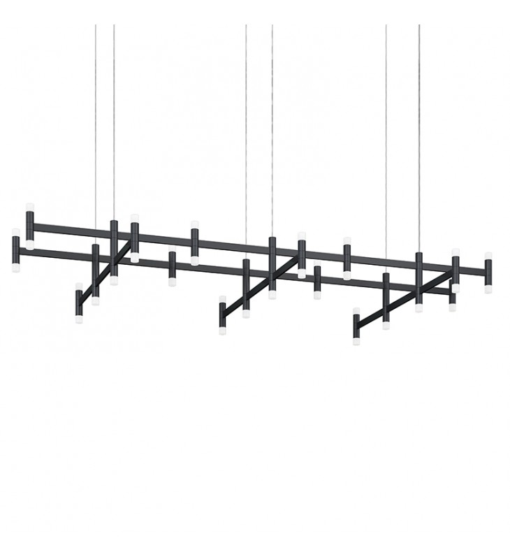 Lightly scaled geometric elements form expansive intersecting or linear constructions of modern minimalism in a variety of configurations with a range of available luminaires. Crisp rectilinear bars support minimal tubular elements with luminous trims, extensions, or shaded reflectors for general and directed lighting functionality. The Systema Staccato Rectangle Pendant includes Drum Trims. Alternate trims can be ordered separately.