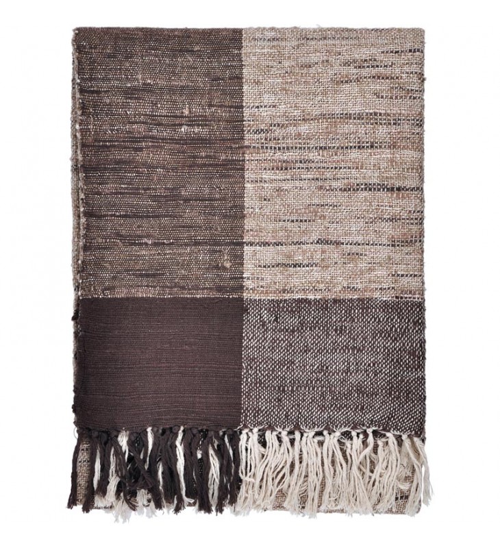 Throw Blanket - Beige Brown & Cream - Woven - Cotton