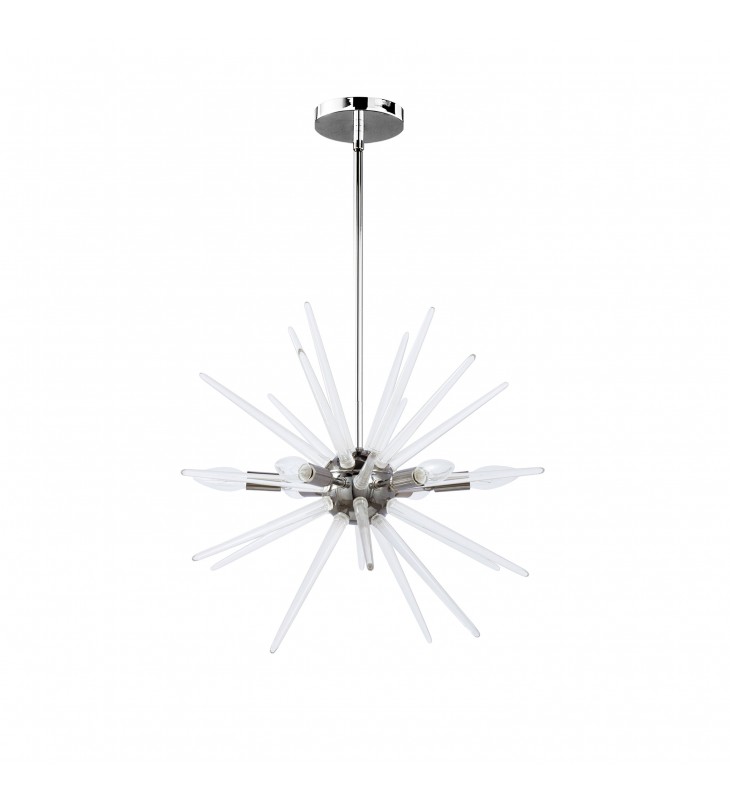Dainolite Modern Vela Hanging in Electroplated Polished Chrome Metal for the Ceiling with 6 bulb, E12 socket base 60 Watts max Dimmable and UL Approved for Dry Location with a 1 Year Limited warranty. Great for Living, Kitchen, Foyer/Hall rooms and Commercial use. Features include , ,