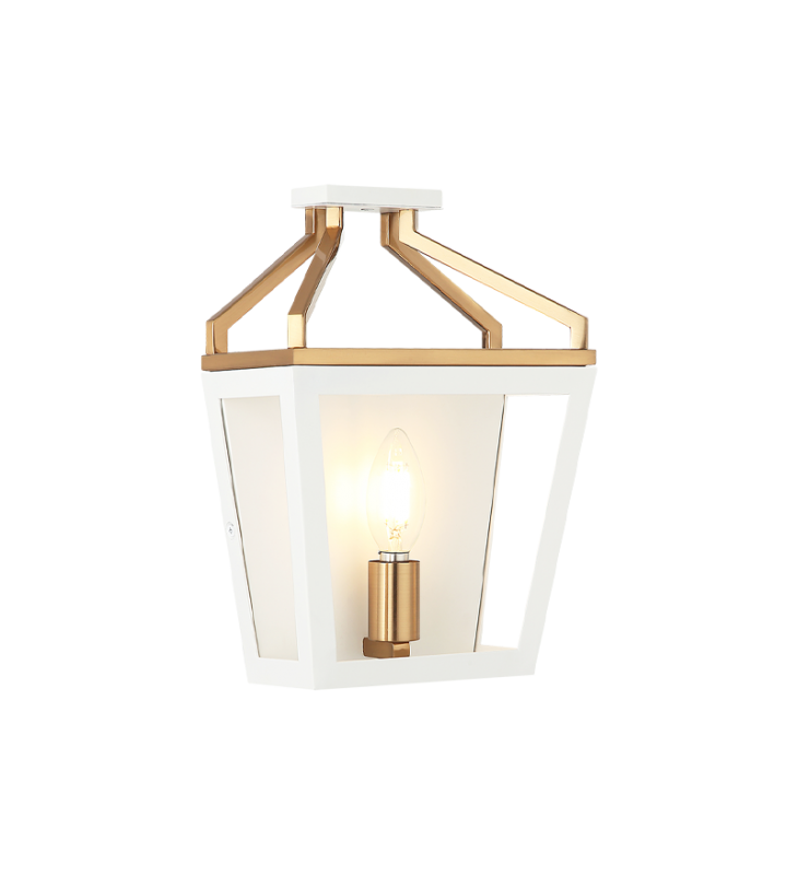 The Mavonshire family is exquisite. Provide visual interest in the unusual two tone frame and classic elegance in the frame shape. From the ceiling mount and wall sconces to the pendants, the entire family is stunning in White and Aged Gold Brass or Black and Aged Gold Brass.