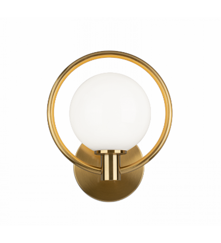 Aerial Quintessential classy light series, the Aerial features a movable ring that provides two looks with just one fixture by moving the ring. Two size pendants and a wall sconce in either Aged Gold Brass or Matte Black both with Opal Glass. *LIGHTBULBS NOT INCLUDED