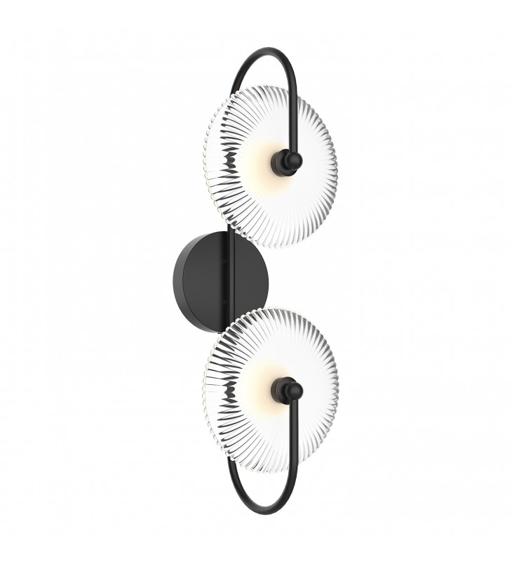WV417802MBCR-Hera 26-in Matte Black/Clear Ribbed Glass LED Wall/Vanity