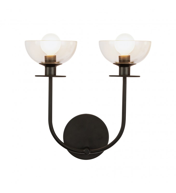 WV515212MBCL-Sylvia 12-in Matte Black/Clear Glass 2 Lights Wall Vanity