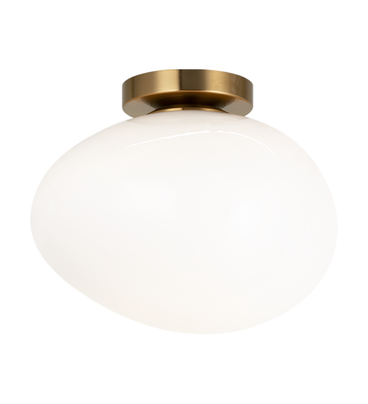 The Melotte family, traditional style but the irregular glass shape provides a fun twist. Each fixture will be unique as not two opal glass will be exactly the same. Available in Aged Gold Brass or Black.