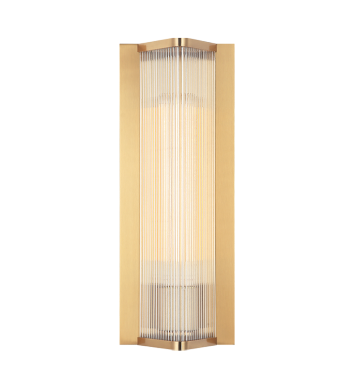 The Palmira is an exquisite wall sconce that comes in either Aged Gold Brass and Matte Black. The triangular shape and beautiful ribbed glass creates a gorgeous stand out statement piece.