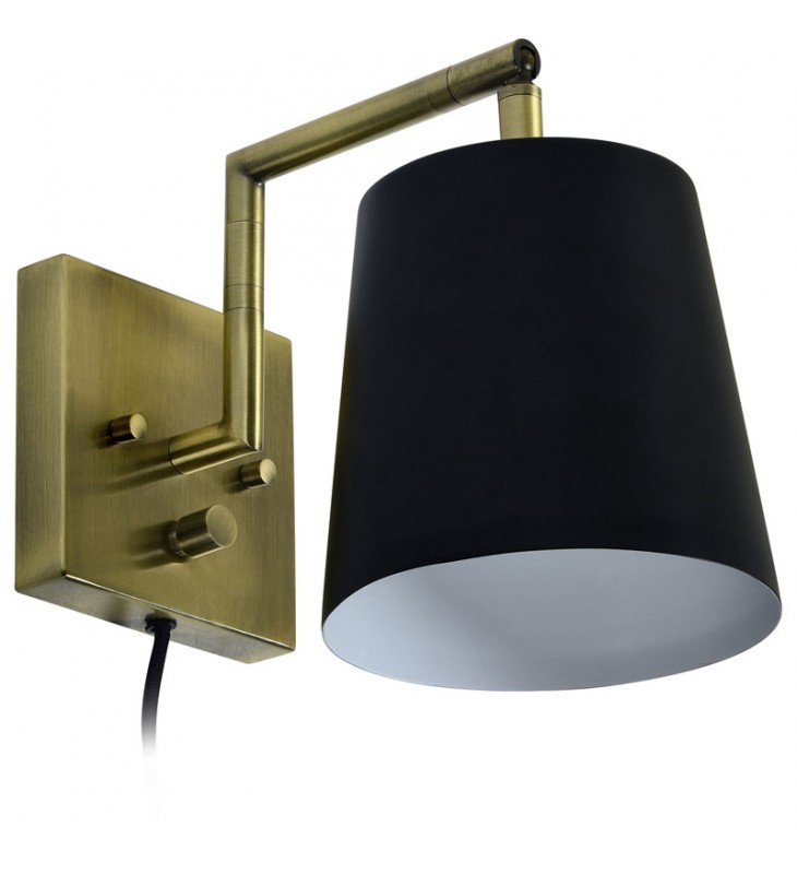 Wall Sconce - Iron - Antique Brushed Brass Finish - Matte Black - Iron Shade - In-Line Switch - Max. 40W - E26 Socket
