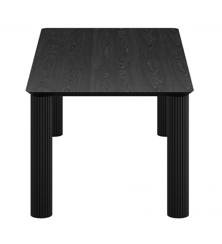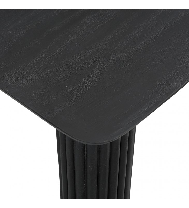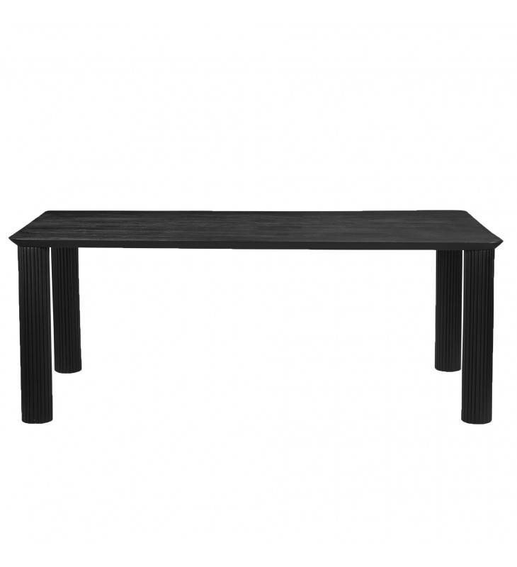 Modern 4-leg dining table; 1-1/2\" thick reverse bevel table top; Solid mango wood with a black, wire-brushed finish on table top; Natural variations will occur in mango wood construction; Eco-friendly solid wood materials sourced from sustainable plantations
