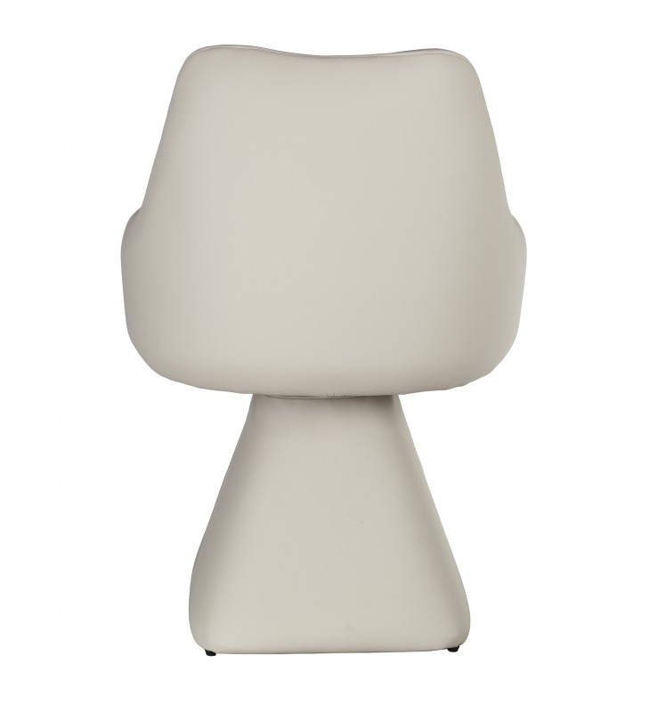 Contemporary dining side chair; Automatic return swivel seat; Faux leather-upholstered seat and base; Medium comfort polyester foam cushion; Approximate weight capacity is 300 lbs; seat height is 19.5\"