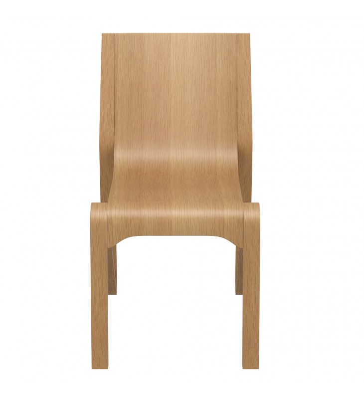 Commercial grade mid-century modern dining chair; Space-saving, stackable design; Sturdy construction of solid oak, plywood and oak veneers; Natural finish with visible wood grain; Approximate weight capacity is 300lbs; seat height is 17.5\"