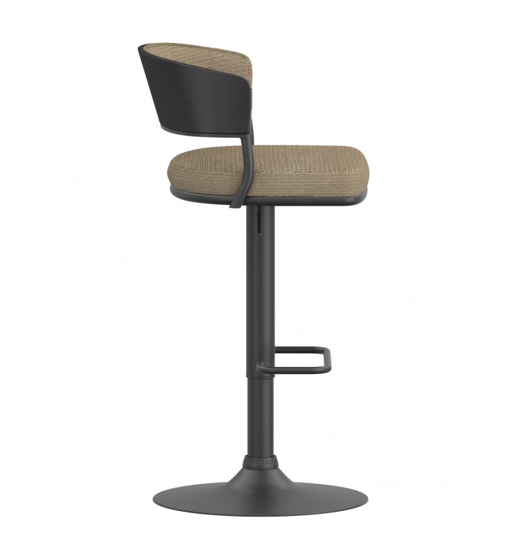 Air-lift seat height adjustment ranges from 24.75\" to 33\"; Soft, textured water repellent performance fabric; Curved bentwood back, metal frame, post and base all in a black finish; Medium comfort polyester foam cushion; Approximate weight capacity is 300 lbs