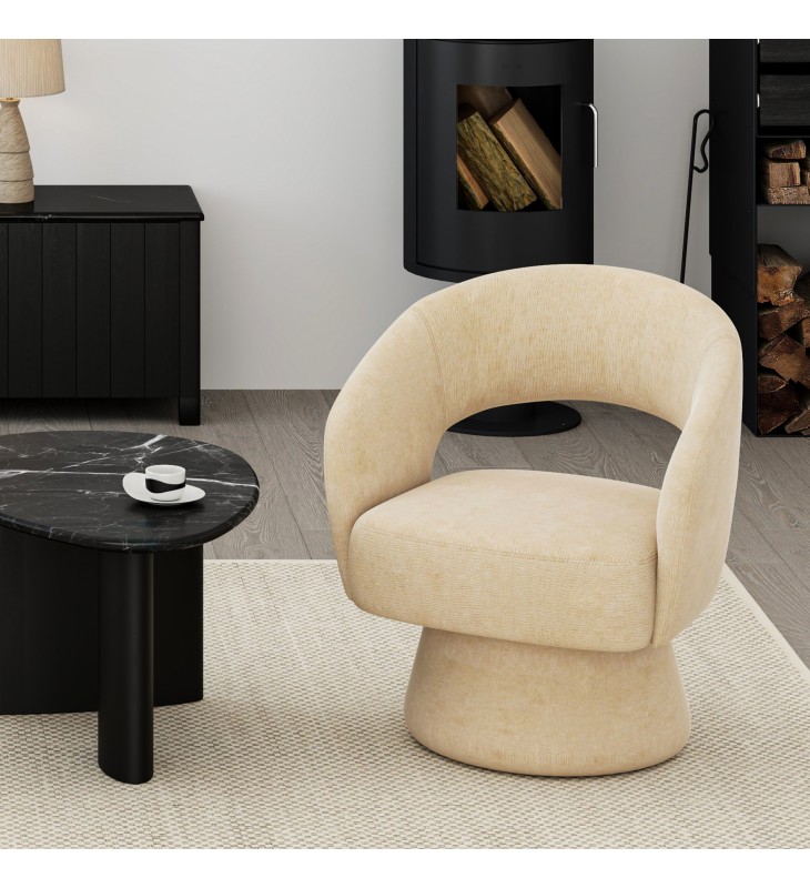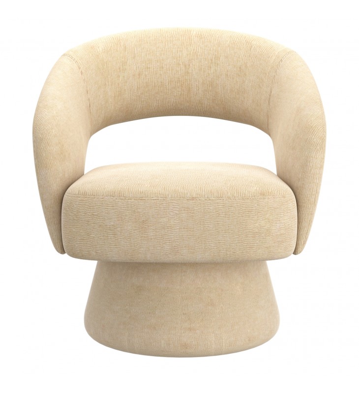 Modern bucket-style chair with full 360¡ã swivel; Plush, textured chenille fabric; Sturdy upholstered pedestal base; Medium-soft comfort polyester foam cushion; Approximate weight capacity is 300lbs; seat height is 18.5\"