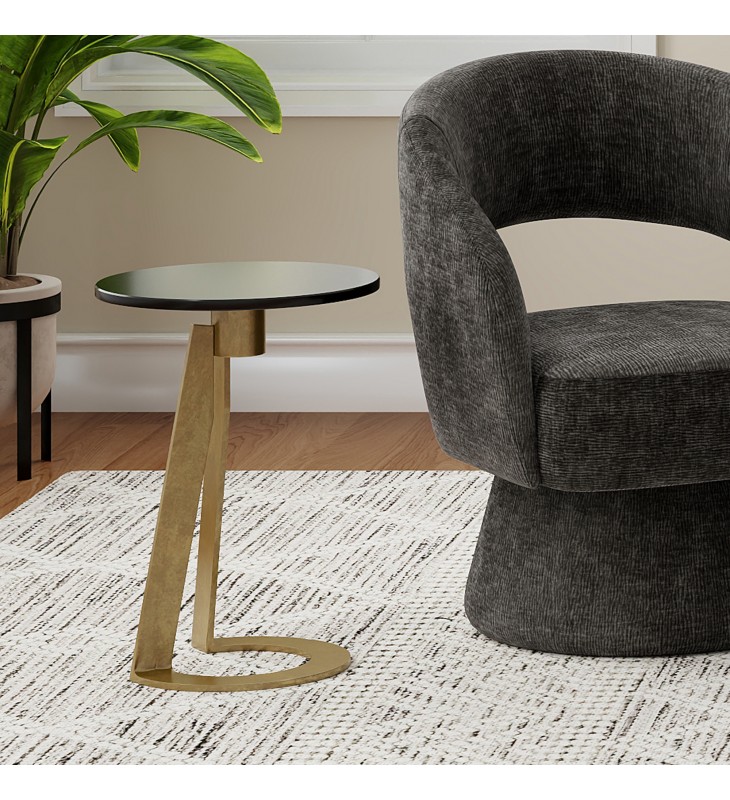 Modern style side table; Solid brass base with a hammered aged gold finish; 25mm thick black marble table top; Solid and sturdy weighted design; Versatile use, design possibilities are endless