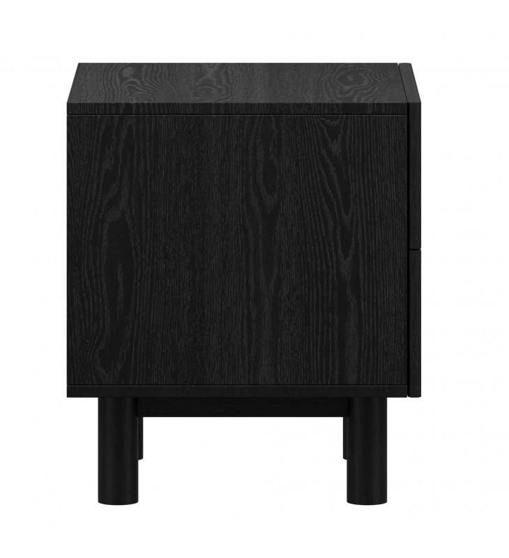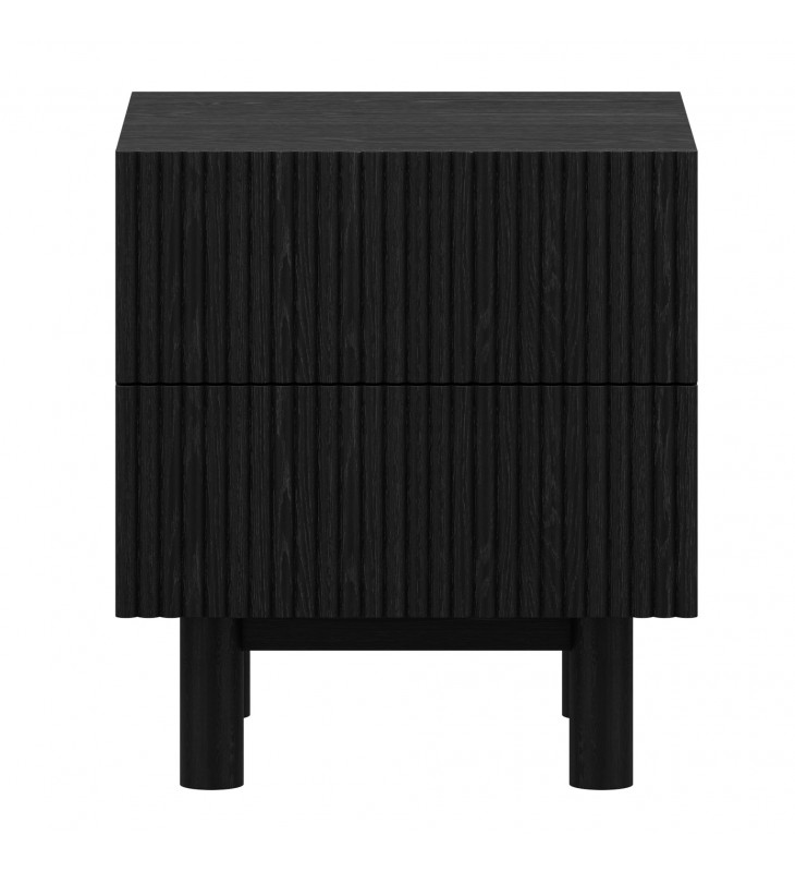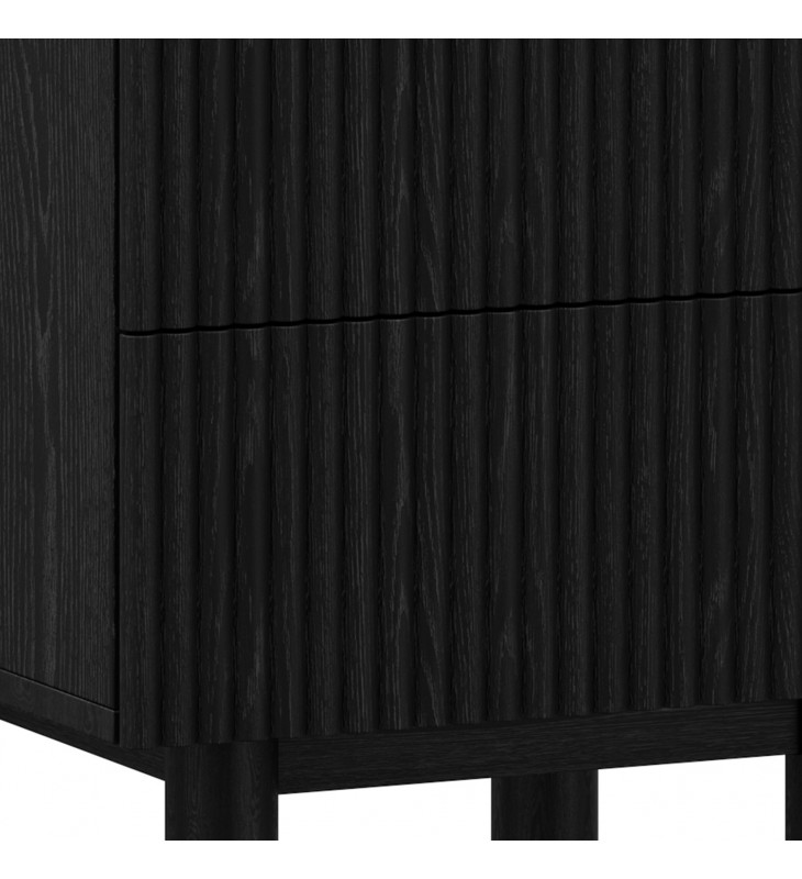 Modern 2 drawer accent or night table; Two spacious drawers with reeded drawer fronts; Solid mango wood with a black, wire-brushed finish on table top; Natural variations will occur in mango wood construction; Eco-friendly solid wood materials sourced from sustainable plantations