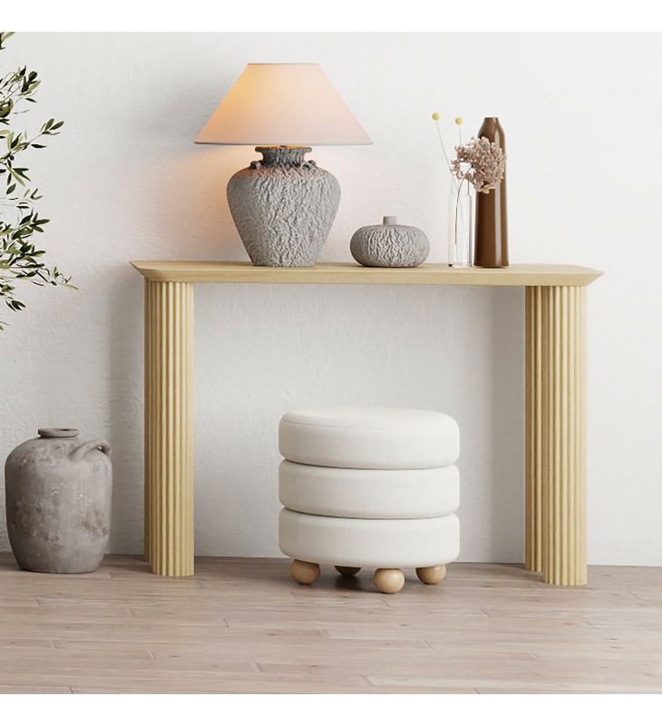Modern 4-leg console table; 1-1/2\" thick reverse bevel table top; Solid mango wood with a natural wood finish; Natural variations will occur in mango wood construction; Eco-friendly solid wood materials sourced from sustainable plantations