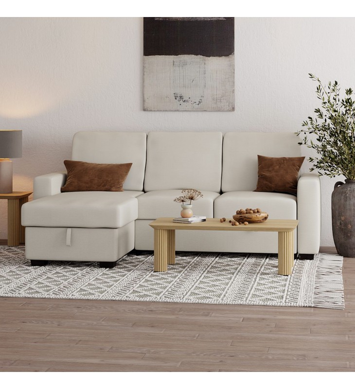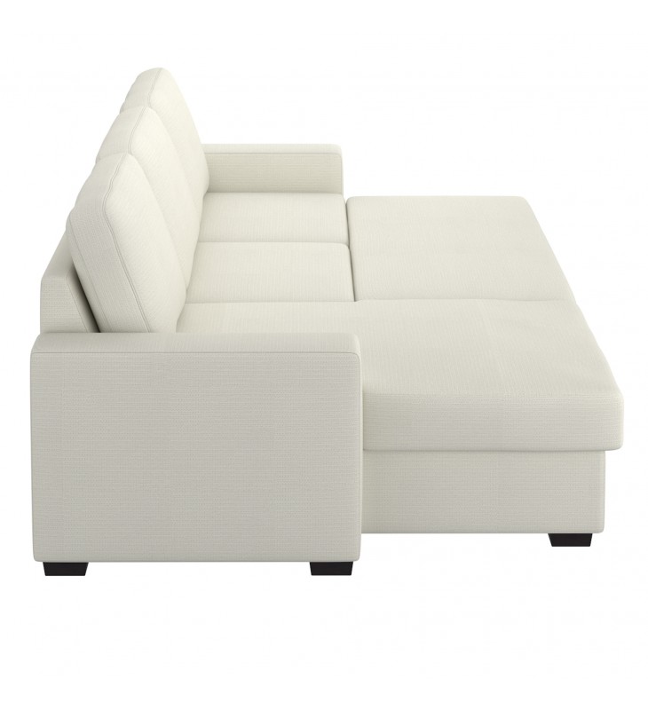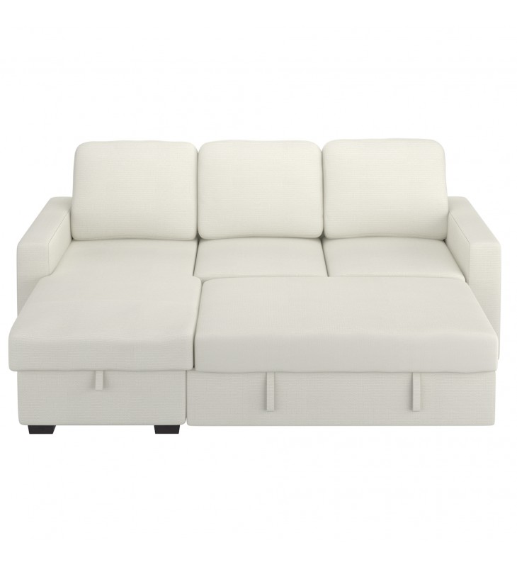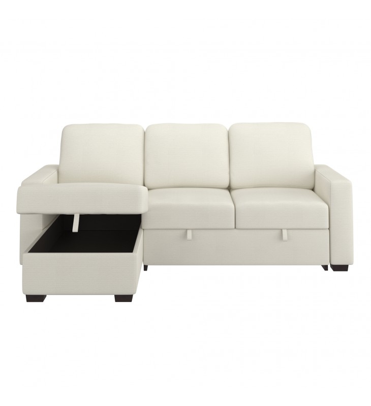 Rich, textured, performance fabric is stain and water-repellent; Easy, pull-out cushion extends sofa to bed; Reversible, left- or right-facing chaise with lift-top storage; Medium-soft comfort polyester foam cushion; Approximate weight capacity is 600 lbs; seat height is 19.5\"