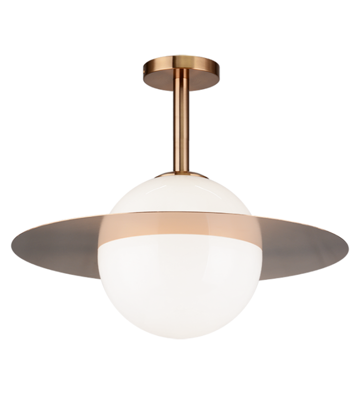 Saturn An elegant and chic light reminiscent of Saturn, features an adjustable disc which can be at a 60 degree angle. Both the pendants and flush mounts are outstanding fixtures to brighten up your home like the galaxy. Available in 2 finishes with an Opal glass.\n\n*LIGHTBULBS NOT INCLUDED
