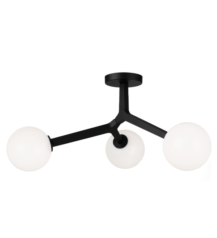 A mid-century inspired series that features branch-like elements with attached Opal Glass. The Rami is a stylish and graceful design that will bring refinement to any room. Available in the form of chandelier, wall sconce, and flush mount.