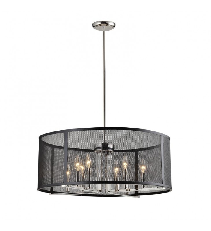 8 Light pendant with black wire mesh shade (E12) (1245C8)