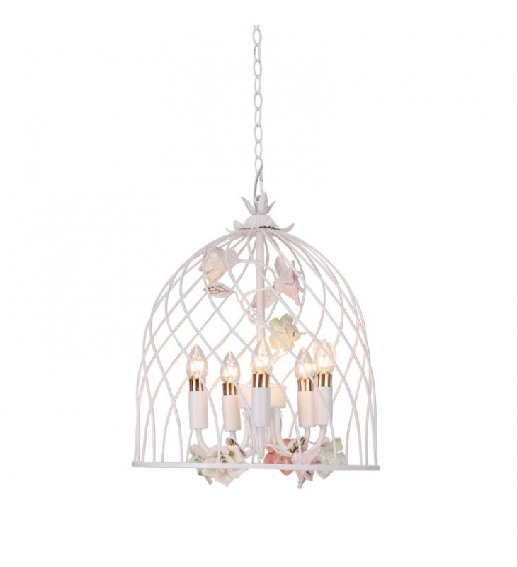 5 Light chandelier with ceramic flower accents (E12) (1313C5)