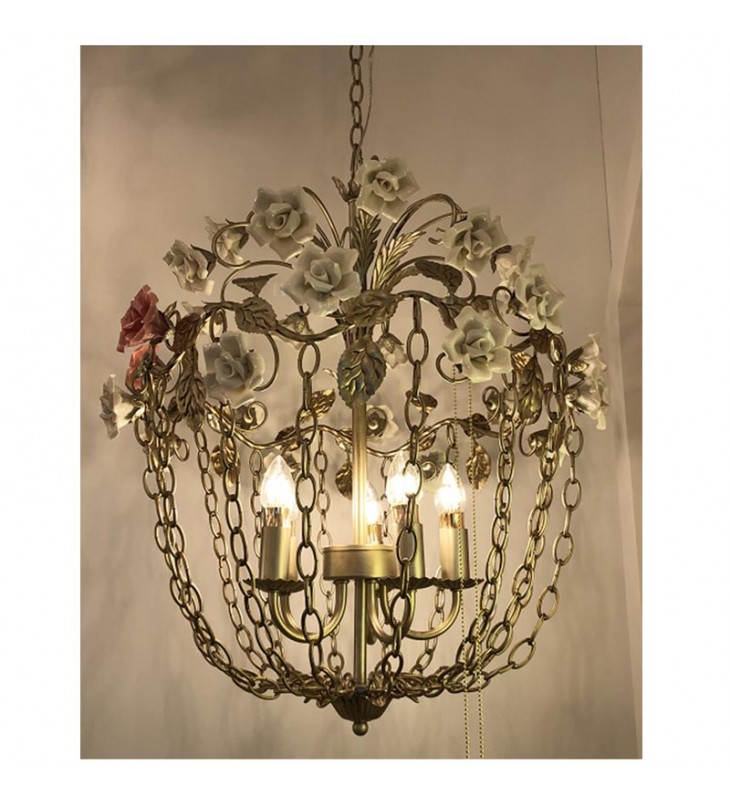 5 Light chandelier with ceramic flower accents (E12) (1316C5)