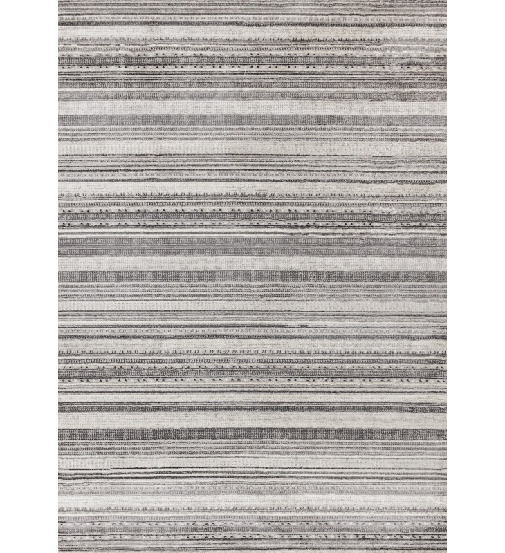 (Z224/Z256 240320)-Zola Grey White Black Patterned Rows Rug, 7'10" x 10'6"-(Kalora)