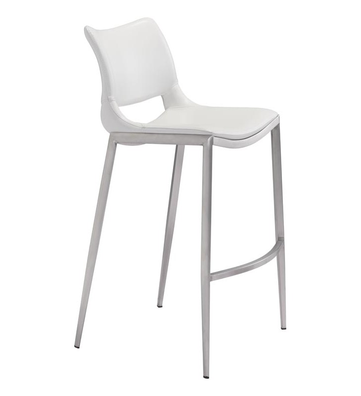 Ace Bar Chair White & Brushed Stainless Steel (101283) - Zuo Modern