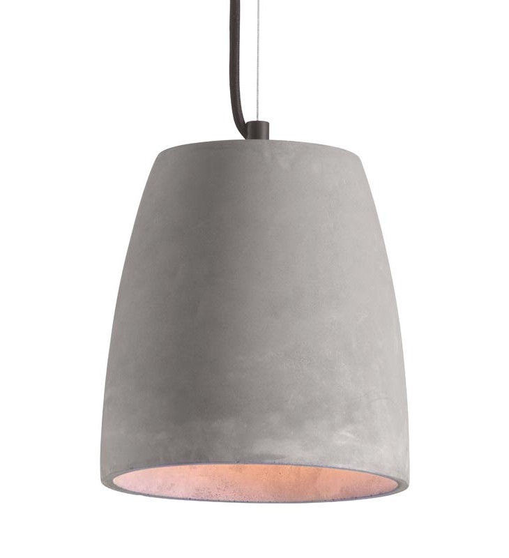 The Fortune ceiling lamp is made of of light-weight faux concrete in a sleek pint sized shape. Faux concrete finish is in a warm grey tone outside and inside of shade. Install alone for a industrial look for kitchen or bar areas or hang several in restaurants. Suspended wire with black mounting fixture and finished with black electrical cord. Bulbs not included. Bulbs sold seperately, Max Watt 60 W, Size E26, Type A19. UL approved and listed.