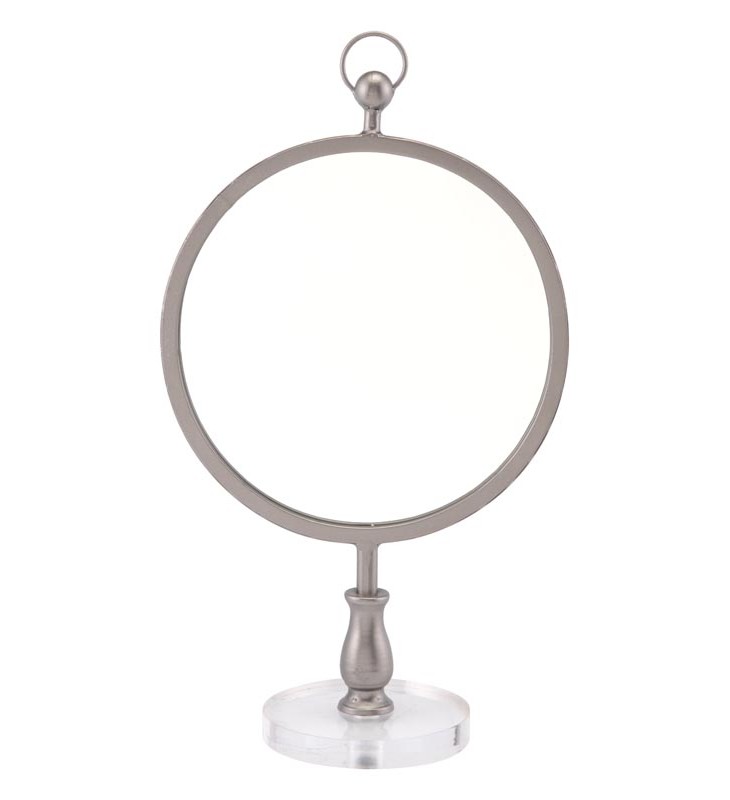 Sitting pretty. Our charming tabletop mirror is lovely on a vanity or dresser. Its round simple features throughout make it easy to incorporate into any style of décor.