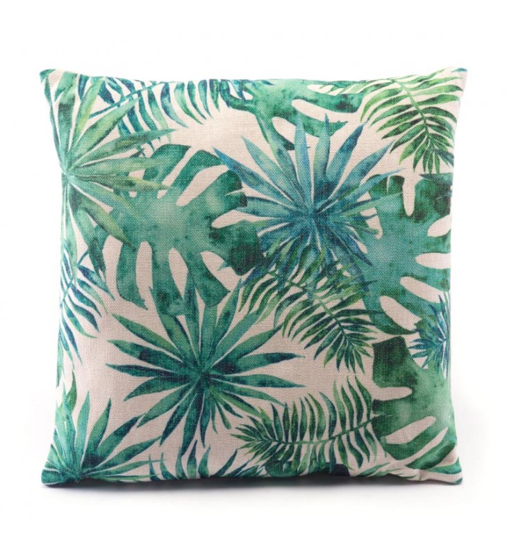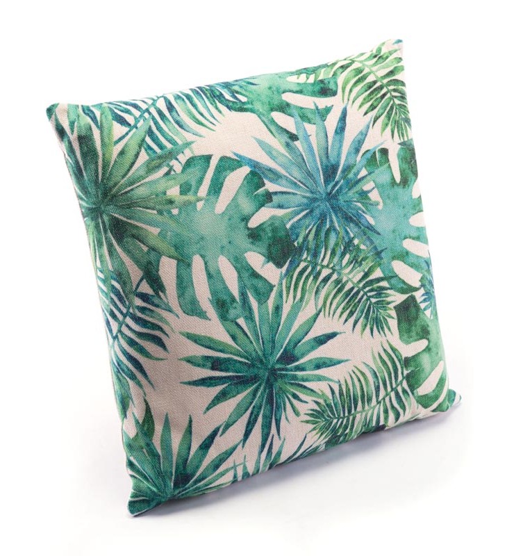 Tropical flair creates a warming trend in any home. This lush pillow in shades of vibrant green and blue will create a stunning focal point on a sofa or chair. Lovely in your beach home or to give your city home a little vacation.